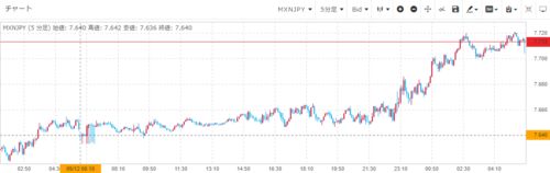結局8.3808円まで登ってましたΣ(゚Д゚) 6月23日 5分足 その内、8.4円台超えそうですね さすがに手が出せませんよ… 他の通貨で遊ぶにも、トルコリラ以外はペソと一緒で上がってるし… トルコリラはさすがに怖いし… 気絶するのが一番なんでしょうね ポジポジ病を…